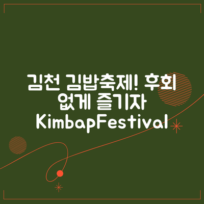 김천 김밥축제에서 놓쳐서는 안 될 10개의 부대 행사를 통해 다양한 즐길 거리를 경험해보세요. 다양한 프로그램과 이벤트가 여러분을 기다립니다.