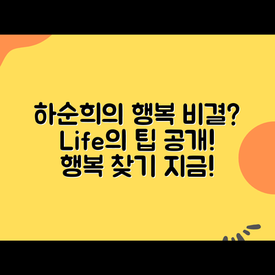 하순희가 전하는 행복한 삶으로 가는 길을 여는 방법은 다음과 같아요: